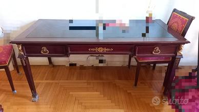 -1 scrivania da centro, decorata su tutti i lati, 3 cassetti, piano in vetro nero