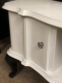 Testiera letto in legno intarsiato, comodino con marmo di Verona, pettiniera con specchio , scrittoio 3 cassetti