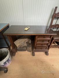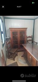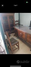 Vendesi mobili in legno massiccio stile umbertino. Credenza, 2 scrivanie e 3 sedie. In blocco o singolarmente.