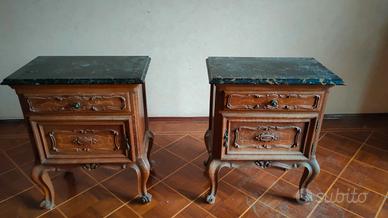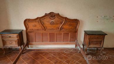 Vendo un letto e due comodini di antiquariato stile barocco piemontese. I mobili sono in legno lavorato a mano, i comodini hanno il ripiano in marmo nero. Buone condizioni e molto belli.