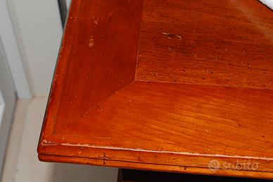 Tavolo fine '800 in legno massello, con cornice in Ciliegio,con le 2 prolunghe 10 posti a sedere. euro 700 , il piano del tavolo è lavorato con sgorbia, ampio cassetto , 4 poltroncine in pelle integre, 80 euro cd. , 2 comodini in noce arte povera, primi del '900 , euro 100 ambedue. Misure vedi foto. Visibile a Treponti di Teolo, Pd. Tutto in ottimo stato.
