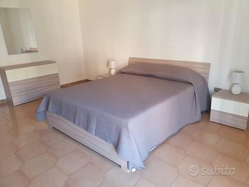 Camera da letto matrimoniale €400: letto 160x200cm, 2 comodini, armadio con specchiera, cassettiera con specchio. Mobili soggiorno €400: Tavolo in vetro, quattro sedie, una vetrina e mobile soggiorno.