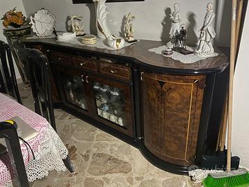 Vendo arredamento compreto di mobili, per chi fosse interessato anche singolarmente. Camera da letto in radica di noce, con comodini, como', ed armadio bombato, culla sempre in radica di noce,e lampadaio. Stanza da pranzo in radica di noce bombata coordinata alla camera da letto con vetrina bombata con faretti interni, tavolo con sedie, e sparecchia tavolo completa con lampadario,come da foto. Cameretta, e cucina in madreperla di 3 Mt completa di tutto con faretti. Vendo tutto in blocco, o anche singolarmente, chi fosse interessato accetto proposta di prezzo. Chiedete per info. FATE VOI IL PREZZO, POTETE COMPRARE TUTTO, O SINGOLE CAMERE.