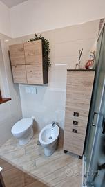 si vende arredo bagno composto da: - mobile lavabo con 2 cassettoni cm 91x52x46(p) - colonna alta cm 34x34x155 - colonna bassa cm 34x34x84 - mobiletto sospeso 4 ante cm 71x81x22(p) - specchio con luce cm 81x70 praticamente nuovo