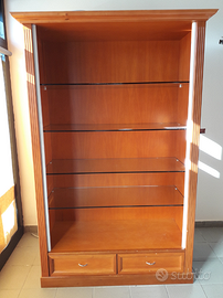 Mobili massello ideali per negozi di articoli da regalo, ma adatti anche per caffetterie, agriturismi, sono interamente fatti a mano e illuminati, più un bancone di vendita curvo con cassetti e cristallo, i vari mobili sono completi di ripiani in cristallo, in 4 sono presenti 2 cassetti, mentre 2 sono interamente a giorno, 1 mobile invece è a vetrina con ante, il tutto in buono stato.