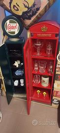 Vendo in coppia o singolarmente mobiletti arredamento vintage. Porta bicchieri (o altro) cristalliera in vetro modello London cabina telefonica e lampada porta oggetti Castrol stile pompa benzina. altezza circa 1 metro e 20 cm. larghezza 50 cm circa profondità 40 cm circa. Prezzo cadauno euro 100 non trattabili. Per info. Salvatore 3665350744