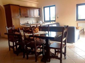 Vendo splendido coordinato per sala da pranzo in legno massiccio, finitura color noce, in ottime condizioni. Perfetto per chi cerca uno stile rustico, classico o per arredare una taverna con eleganza e robustezza.