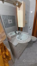 vendita in blocco due mobili bagno con top in marmo e lavabo incasso corredati di specchiera e rubinetteria Grohe. misure 140x45 e 90x145