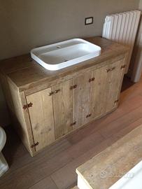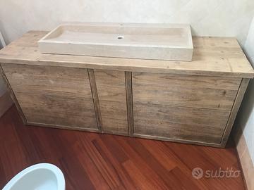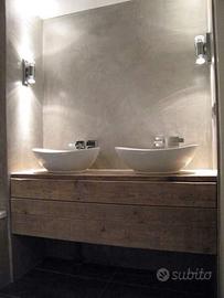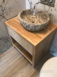 Dal mobile bagno, completo di cassetti o cassettone unico, sospeso o poggiato a terra, alla mensola o top in legno sospeso.