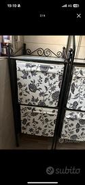 Composizione mobili bagno composta da - mobile in ferro piu alto due cassetti e 4 ripiani in vetro alto 170cm - mobile in ferro piu basso due cassetti e un ripiano in vetro alto 95cm Ben tenuto 30€ intera composizione con cassetti in tessuto Ritiro a Pescara