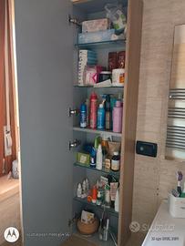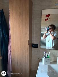 Lavabo sospeso cm 0,80 con cassettiera ampia a due cassetti + mobiletto piccolo stesso colore ma in foto, causa gioco luce, sembra di colore diverso + colonna a parete h 1,40 x 0.20x0,35, stesso legno. Nessun segno di usura. Vendo per cambio arredo