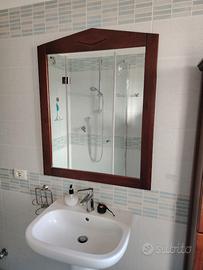 Occasione! Causa vendita appartamento e necessità immediata di liberare l'immobile svendo tutto l'arredamento. Mobiletto bagno stile arte povera 60 x30 x 172 e specchio con cornice 80 x 100 entrambi in legno e realizzati artigianalmente a Siena. Trasporto a cura dell'acquirente