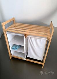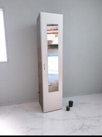 vendesi vari mobili da bagno come in foto: mobiletto porta scope con specchio, porta rotolo, mobile cesto lavanderia, carrello. tutto in ottimo stato usato pochi mesi.