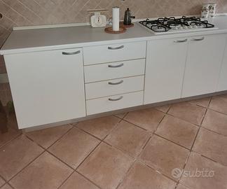 mobili da cucina componibili bianchi con antine e cassetti piano cottura e lavello lunghezza 410 modificabile profondita' 60 smontaggio e trasporto a carico acquirente