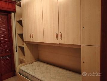 Camera ponte, completa di due materassi praticamente nuovi, e 2 mensole da muro per libri. Come nuova, materiale molto resistente non economico.