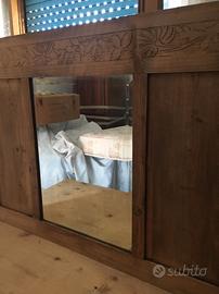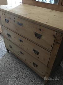 Comò con specchio e tre cassettoni e due comodini per camera da letto, da restaurare, completamente sverniciati. Presuntivamente dei primi del 900 o anche precedenti. in buono stato come da foto. Vendita in loco. Per altre foto o info contattatemi per messaggio.