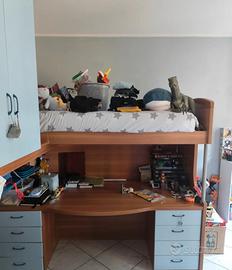 -blocco armadio, scrivania con cassetti, lettino singolo e blocco scale con vani contenitori (il tutto visibile in foto)