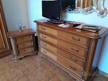 Vendo camera da letto completa composta da armadio a 6 ante, comodini (sono 2) con tre cassetti + comò con quattro cassetti. Legno