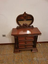 Mobili per la camera da letto con armadio, 2 comodini con specchio e comò con specchiera tutto in legno. Lo stile del mobile è quello anni 70 - 80