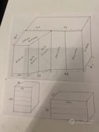 Vendo mobili per camera da letto cosi composta : armadio lineare con cabina armadio con piu appenderie . Letto in legno venghe ‘ con giro letto in ecopelle . Due comodini . Cassettiera alta con 5 cassetti e una piu bassa con 4 cassetti . Misure in foto . No materasso