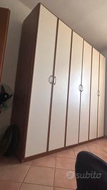 Armadio a 6 ante, cassettiera e 2 comodini.
