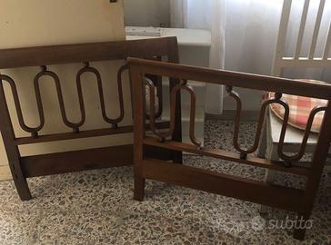Camera da letto presumo anni 50 del 900, composta da due letti separati ma unibili, senza reti, un armadio a tre ante con specchiere interne e cassettone, un comodino a due ante, una scrivania con piano in vetro e due sedie imbottite.