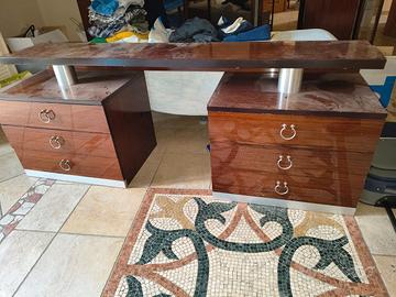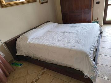 Mobili camera da letto composti da armadio, letto, comodini e scrivani. Il letto presenta delle scheggiature sulla parte finale