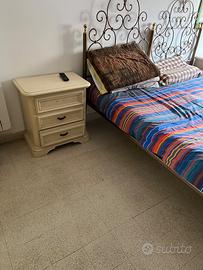 Armadio in legno 5 ante comò in legno 2 comodini laccati e letto in ottone