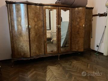 Armadio 6 ante con cassettone e mobile da toilette inizio anni 50