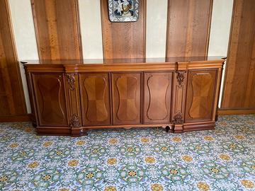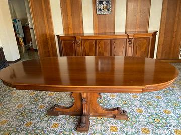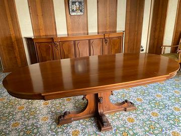 vendesi tavolo + credenza bassa anche con cassetti + 6 sedie senza braccioli + 2 sedie capotavola con braccioli in legno. DIMENSIONI / tavolo: lungh. 230 largh. 110 - credenza: lungh. 290 alt. 95 prof. 45 - sedie: alt. 80. Ritiro presso l'abitazione.