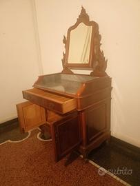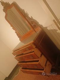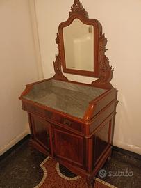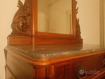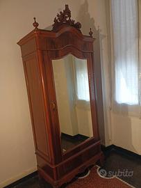 Mobili coordinati per Camera da Letto primo decennio 1900 in legno Noce massello, con piane in marmo, tutti in ottime condizioni e cura. - Comò: misure L.118cm X Prof.57cm X Htot.238 cm compreso di specchio. - Armadio: misure L.110cm X Prof.58cm X Htot.260cm (l'anta misura 87cm X 155cm). - Toelette: misure L.90cm X Prof.54cm X Htot. 171cm (specchio inclinabile). Disponibili per il ritiro zona stazione Brignole. Prezzo per tutti e tre i pezzi insieme euro 400,00
