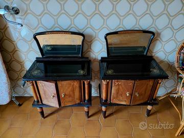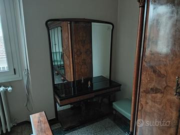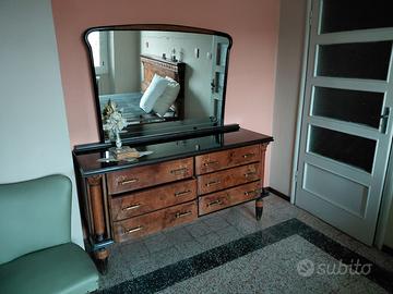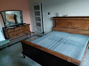 splendida camera da letto stile impero, composta da letto matrimoniale (lunghezza cm. 225, larghezza cm. 180 altezza letto cm. 47, altezza spalliera cm. 127), due comodini, cassettiera con specchi (lunghezza cm. 160, larghezza cm. 50, altezza cm. 83, altezza con specchio cm. 175), guardaroba 6 ante (lunghezza cm. 300, larghezza cm. 65 altezza cm. 200), petineuse (lunghezza cm. 120, larghezza cm. 36 altezza cm. 175), due poltroncine e uno sgabello.
