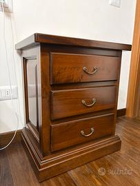 camera in noce nazionale, perfetta, composta da armadio , due comodini, un comò con specchio e un letto matrimoniale .