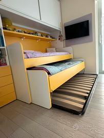 Vendo bellissima cameretta completa, composta da mobili di alta qualità acquistati presso negozio specializzato. Il design è moderno e vivace, perfetto per bambini o ragazzi, nei colori Bianco, Giallo Zafferano e Lilla.