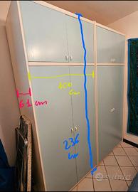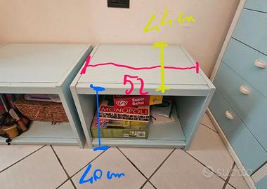 Vendo per cambio arredamento mobili per cameretta bambino. Due mobili altezza 236 cm; larghezza 100 cm; profondità 61 cm. Cassettiera 10 cassetti altezza 77 cm; larghezza 120 cm; profondità 46 cm. Due comodini altezza 40 cm; larghezza 52 cm; profondità 44 cm. I mobili si trovano a Finale Ligure zona San Bernardino. Trasporto e montaggio a carico dell’acquirente.