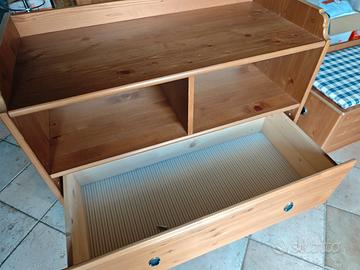 Vendo mobili in legno: Comò (89,5x42,5xh94)+cassapanca 82x43,5xh53)+appendiabiti (89,5x19xh22) della stessa linea ikea. Cuscino sfoderabile e lavabile. Buone condizioni. Ultimo prezzo 99,00. NON SPEDISCO