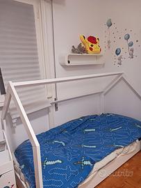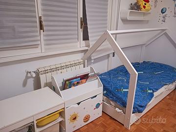 In ottime condizioni, usati pochissimo, leetto montessori (90×200),incluso materasso,libreria e scaffale ikea con contenitori , tavolino e sedia ikea p praticamente nuovo, come verificabile. Tavolino per costruzione dei binari del treno.Stiamo.vicino piazza.della.Balduina.