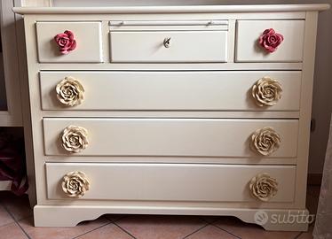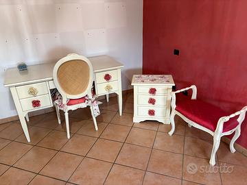 Mobili Hallet in legno massello. scrivania con sedia, comodino, comò.