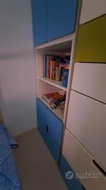 - elemento con comparto ad ante azzurro e 2 cassettoni sottostanti bianchi