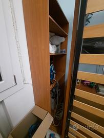 Vendo cameretta in buone condizioni composta da ampio armadio 2 ante più letto da una piazza e mezzo, comodino,biblioteca e un scaffale angolare con 6 mensole che si può affiancare al armadio.