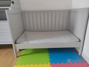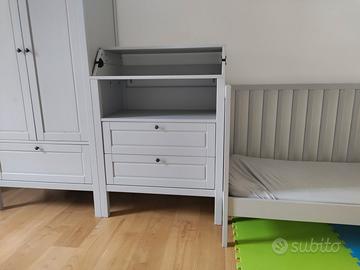 In vendita per arrivo seconda gravidanza lettino, cassettiera con fasciatoio e armadio serie SUNDVIK di Ikea. Incluso materasso KRUMMELUR e coprimaterasso resistente all'acqua LENAST sempre serie Ikea. Il tutto usato per pochi mesi. Il lettino è dotato di seconda sponda (attualmente non fotografata poiché viene usato senza).