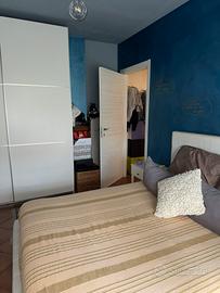 -Camera da letto con letto contenitore, due comodini, due cassettiere, un armadio singola anta, un armadio a doppia anta scorrevole