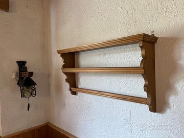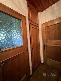 MOBILI CASA INTERA 1000 euro per tutto, trattabili – da ritirare entro il 3 maggio 70 euro Appendiabiti in ferro battuto 133x85x23,5 cm 50 euro Armadio a muro Vano inferiore - larghezza interna 63 cm, profondità interna 75 cm, altezza interna 175 cm Vano superiore - larghezza interna 63 cm, profondità interna 75 cm, altezza interna 66,5 cm 300 euro Tavolo con sedie (3) e giropanca (contenitore) Panca 198,5x139 cm (seduta 56 cm con cuscino), alta 92 cm (seduta alta 47-48 cm) Sedia 37x46x84,5(h) cm, seduta 46,5 / 50 cm (senza/con cuscino) Tavolo 100x76x76(h) cm 300 euro Credenza stile tirolese 106x47,5x199(h) cm 250 euro Madia stile tirolese 94x42x101(h) cm – piedi 10,5 cm 15 euro Mensola di legno 63 cm (lato), 52 cm (diagonale), 3 cm (spessore) 30 euro Mensole di legno 84,5x18x44(h) cm 50 euro Scaffalatura di legno (sotto finestra) 254x20x72(h) cm – in foto altezza da terra 90 cm Nicchie sinistra 60 cm, nicchia destra 64 cm 50 euro Cucina Mensole piccole 90x15 cm Mensola 143x20 cm Pensili alti 87,5x61 cm, profondità 34 cm Mobile lavello 88x50 cm (alto da terra circa 85 cm) Mobile fornelli 78x50,5 cm, profondità 51 cm (alto da terra 85 cm) Piccolo mobile-colonna larghezza 30 cm, profondità 38 cm (alto da terra circa 82 cm) 40 euro Divano letto con doghe (materesso e rivestimento inclusi) Dimensioni da divano (chiuso) 167x103x78(h) Dimensioni letto aperto 210 cm 150 Letto a castello in legno con reti e materassi e scaletta 80,3x209x257(h). Scaletta 149x49x10 cm 40 euro Cassettiera 25 euro Armadio bagno 50 euro Porta di legno e vetro 73,5x197x4 cm. Cornice 82,5x202,5x2,5 cm 50 euro Porta scorrevole 60,2x197(h) – spessore 4,5 cm (più rilievi). Cornice 146x206,5(h) 40 euro Lampadari e applique