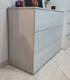 Vendo cassettiera (L 103 x P 40 x H 74 cm) e n. 2 comodini abbinati (L 48 x P 38 x H 41 cm), acquistati a ottobre 2024 e in condizioni pari al nuovo.