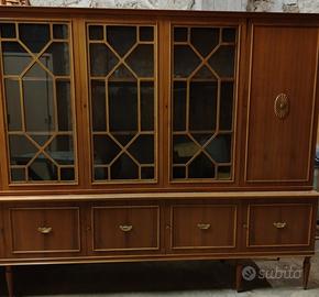 Arredamento per ufficio o studio professionale, in legno, in ottime condizioni. Scrivania legno e vetro + armadio 5 ante + 3 sedie, una con poggioli e due senza.