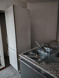 2 mobili colonna gemelli Arclinea per cucina, in laccato grigio chiaro, comprensivi di frigo (AEG) e forno (REX). Il forno è praticamente nuovo, mentre il frigo è in buone condizioni ma ha qualche segno di usura (un cassetto è stato riparato).