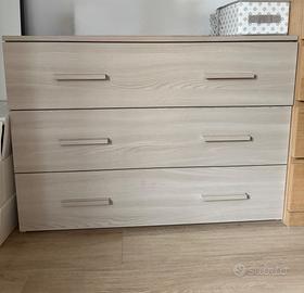 •🧺 1 comò a 3 cassetti effetto olmo perla (107 x 47 x 77 cm) → 120 €