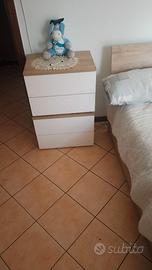 Cameretta completa di 2 comodini , armadio 240cm x 230 cm letto contenitore e comó 110cm x 77 cm unico colore bianco con venature marroni