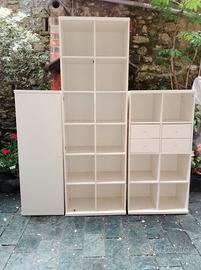 mobile componibile bianco Ikea: mobile alto con vetrinetta, h 220, largh. 73, prof.40. euro 70/ mobile con 4 cassetti, h 145, largh.73, prof.40. euro 40./ mobile con sportello e ripiani h 145, largh. 73, prof. 40 , euro 40 possibilità di vendita separatamente