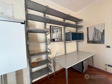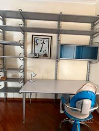 Libreriei in metallo Caimi 250x45 h 250 con scrivania Caimi 180x80 + modulo libreria Caimi 120x45 h250. Usata ma ben tenuta, un grande classico sia per la cameretta di un ragazzo sia per un ufficio. Comoda e facile da manutenere e adattare a tutti gli spazi. Se si vuole completare il tutto anche con il letto, che ha un sottoletto con reti e materassi basterà aggiungere 50 euro